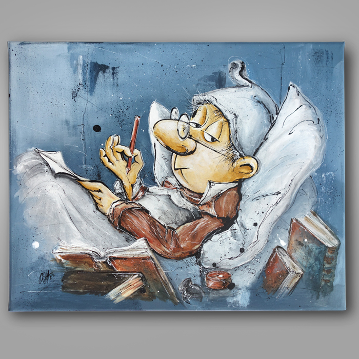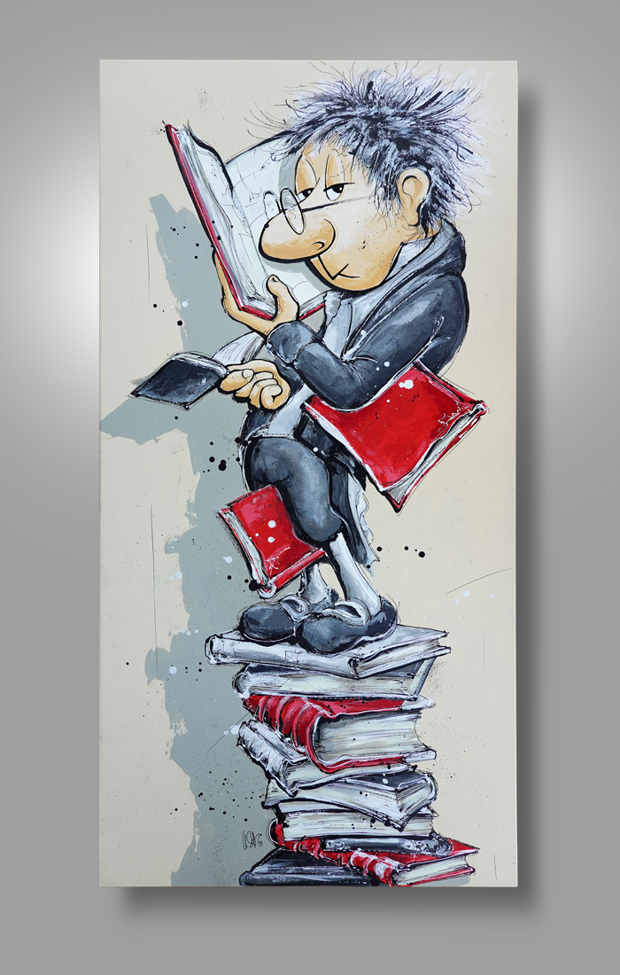 Die Neufassung des „Bücherwurms“ thematisiert den Humor in Spitzwegs fast zwei Jahrhunderte altem Meisterwerk.