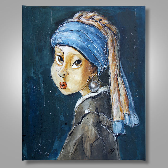 das Mädchen mit dem Perlenohrring (auf Holz 40 cm x 47cm) .