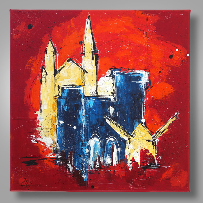 Das Gemälde spielt mit den Silhouetten Trierer Gebäude.