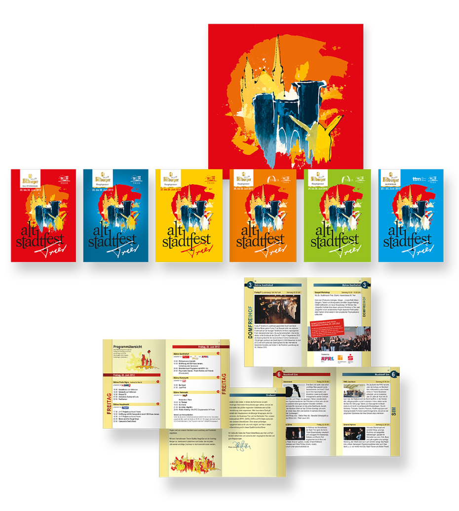 So, wie die Porta Nigra als Symbol für Trier in den Köpfen fest verankert ist, so soll sie erkennbar im Zentrum des Designs stehen. Die malerische Abstraktion will darüber hinaus den modernen und lebendigen Aspekt einer Großstadt ausdrücken, mit den lockeren Flächen und den sich auflösenden Konturen die Lebendigkeit in zeitgemäßer Form wiedergeben.