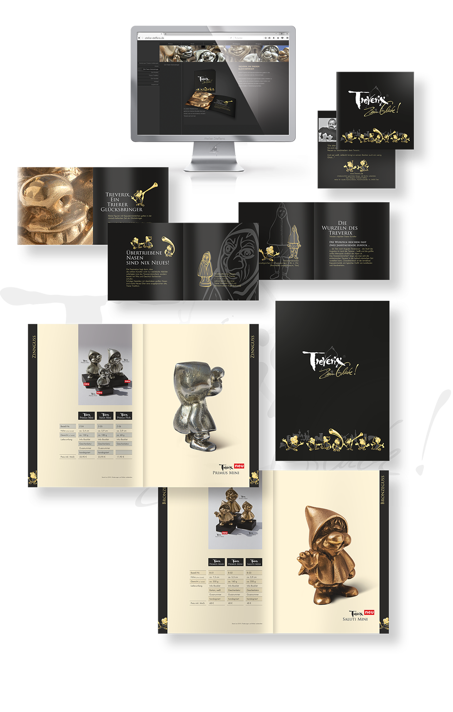 Print- und digitale Medien, die die Besonderheit der Skulpturen unterstreichen.