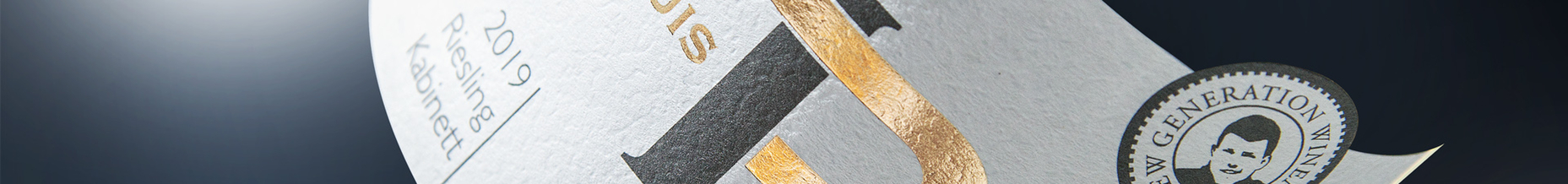 Modernes, aufgeräumtes Design, konzentriert auf die zentrale Marke, in wertigem Grau und Gold auf edlen Materialien.